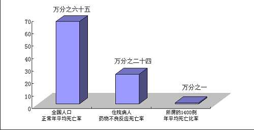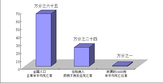 退一万步,先不说这1400例如何经不起推敲,就假定这1400例是真的,就假定全国炼法轮功的人数是中共迫害开始时所谓的仅有二百万人(实 际上,一九九八年官方公布全国约有七千万到一亿人炼法轮功),从一九九二年到一九九九年,按中共造谣的死亡1400例算,平均一年两百人,即 所谓的炼法轮功死亡的年平均死亡率仅为万分之一;而根据《中国统计年鉴1996》,在一九九零年到一九九六年七年中,全国人口正常的年平均死 亡率为万分之六十六,大大高于所谓的炼法轮功死亡的年平均死亡率;而据国内医药学专业期刊提供的数字,住院病人中因药物不良反应而死亡的死亡 率至少是万分之二十四,也远远高于法轮功修炼者万分之一的年平均死亡率。退一万步说,假定这1400例是真的,那么它恰恰证明了法轮功在祛病 健身方面的奇异功效,而不是其它。