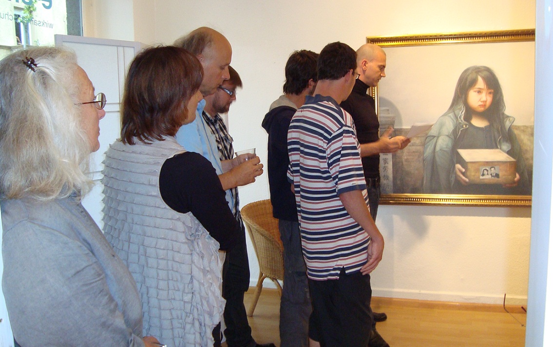 【明慧网二零一一年九月二十六日】二零一一年九月二日至二十三日,“真善忍国际美展”在德国的大学名城弗莱堡(Freiburg)首次举办。画展揭露了中共对法轮功学员的残酷迫害,令市民震惊。作品中展现了法轮大法的美好和法轮功学员的境界,感动了很多人。而高超的艺术作品也给画家、艺术家们留下了深刻的影响。