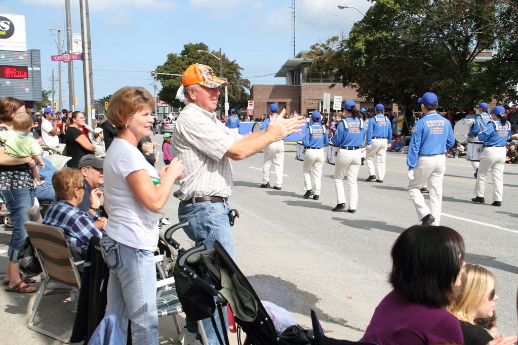 圣•卡瑟琳市居民安吉拉(Angela)带着孩子们一起鼓掌和欢呼,她说:“壮观的乐队,非常喜欢!”她的先生卡尔(Karl)说:“很雄壮的乐团。孩子们都很喜欢,非常感谢!”