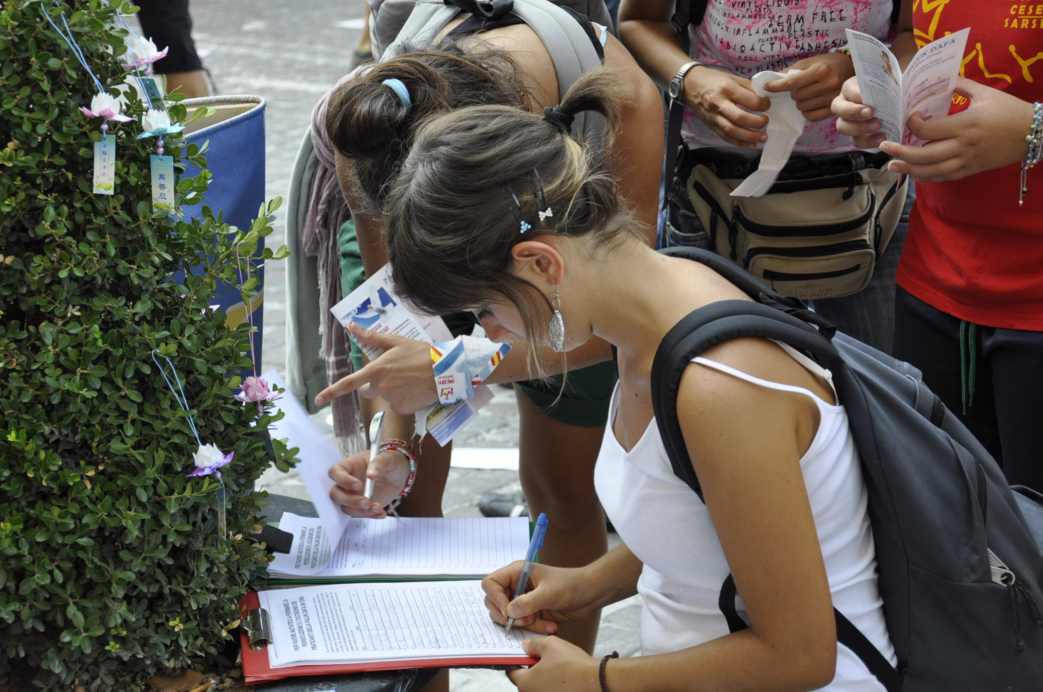 ![]() 意大利民众签名表达他们对法轮功的正义支持 |