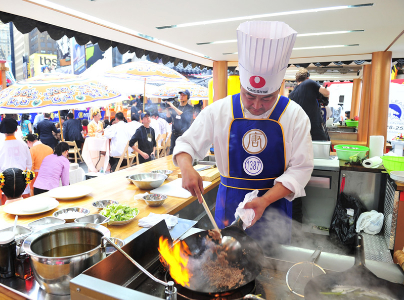 这两天,大赛主办方将纽约时代广场“装扮”成了中国盛唐时期古长安。三十位来自日本、爱尔兰、中国大陆、马来西亚、澳洲、加拿大、美国等十多个国家和地区的选手,于二十二日角逐川菜、鲁菜、粤菜、淮扬菜和东北菜,五大菜系的决赛资格。十四位选手入围总决赛,在二十三日与来自台湾已获得决赛资格的选手共同角逐金、银、铜奖。