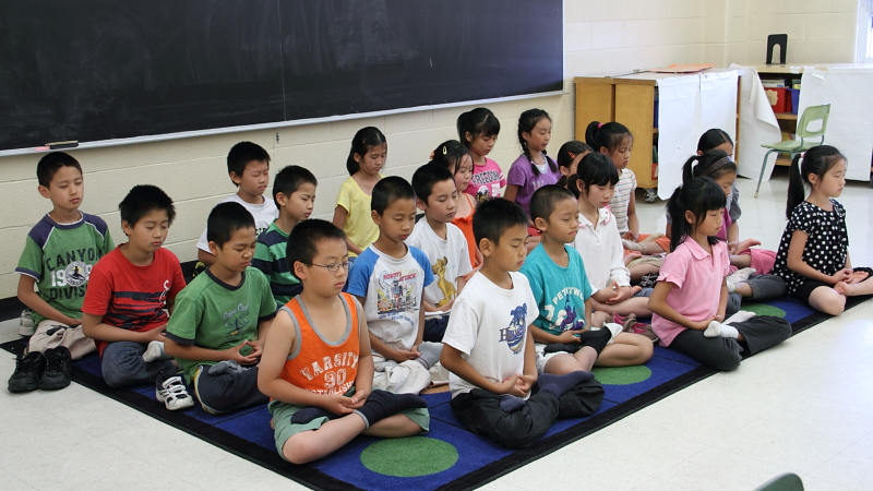 八岁的Sunny因为家住离多伦多约一小时车程的密西沙加,所以以前一直没能参加明慧学校暑期班,但她一直都很盼望能上明慧学校,今年终于如愿以偿,第一次参加了明慧学校的暑期班,她非常高兴,也很兴奋。她说:“每天都学法、炼功,在家里是做不到的,在学校还能做到了双盘,开始有点痛,知道是消业,后来就越来越舒服了。中文进步最快,晚上回来能跟外婆读《转法轮》了。”她的外婆说:“她每天从明慧学校回来,晚上都能给我讲一个传统故事。”