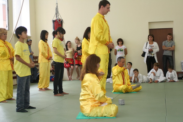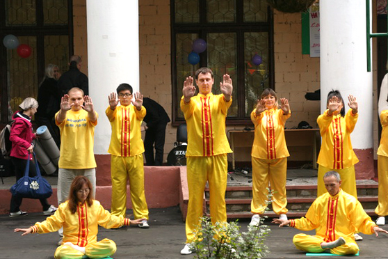 ![]() 法轮功学员们在“奥里翁”休闲中心展示法轮功功法 |