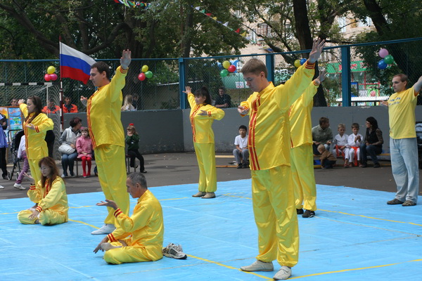 ![]() 莫斯科法轮功学员在斯坦金技术大学附近的公园展示法轮功功法 |