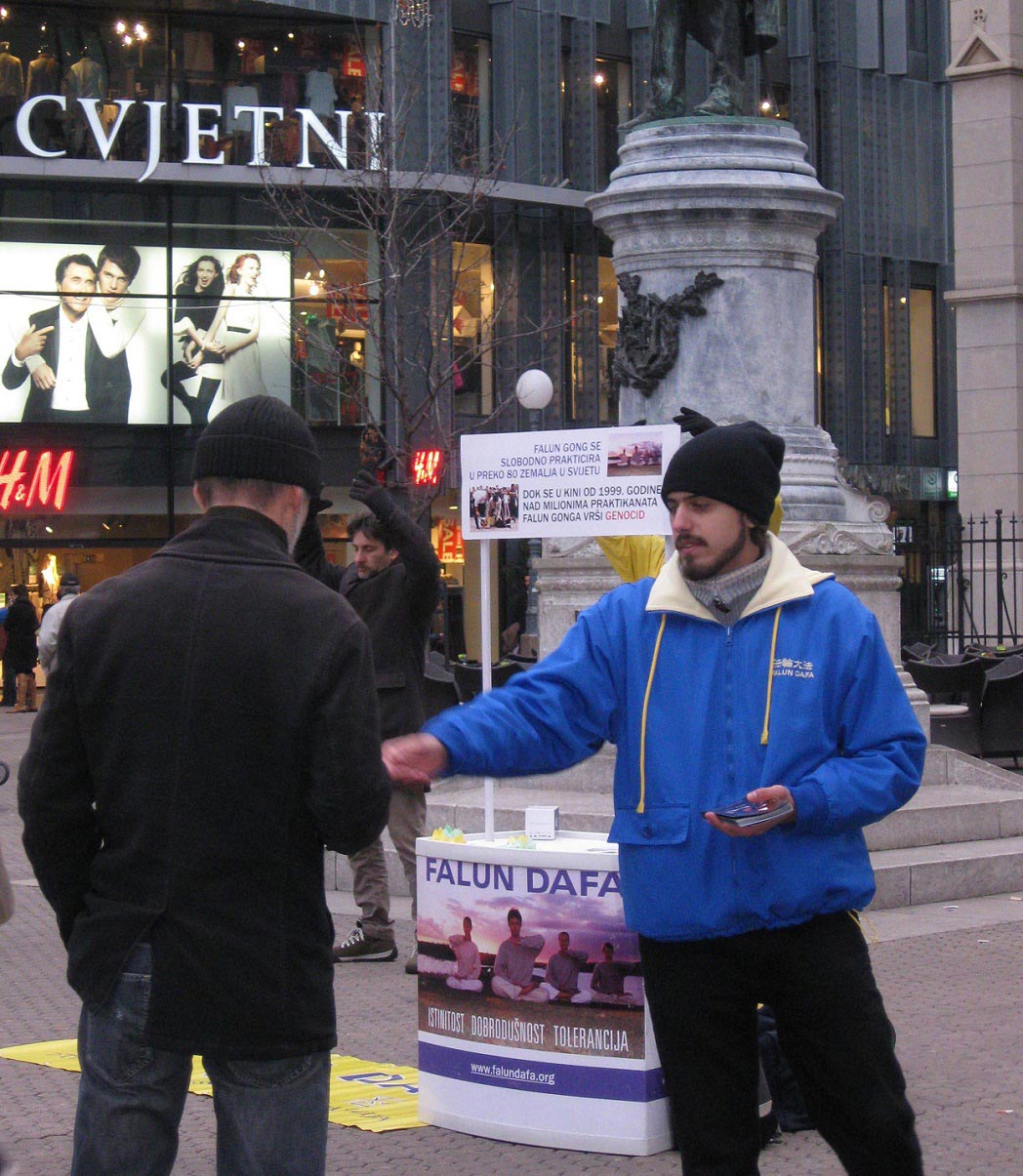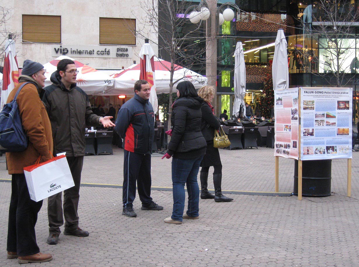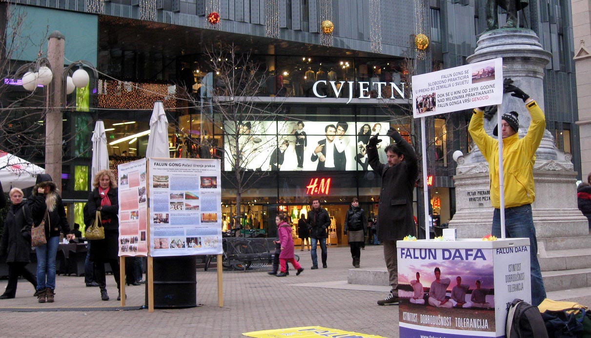 二零一二年一月五日,退!党!服务中心义工走进首都萨格勒布市华人商品批发市场,给里面的各个华商摊位分发《·九·评*共产党》和法轮功真相资料,受到商户的欢迎。一些拿到资料的华人,爱不释手,来了业务忙里忙外,但资料揣在身上或攥在手里,得空就看。义工发完一圈回来,接着给人们讲为什么要退出中共相关组织,劝一个退一个。有些华人,不等劝,上来主动说:我也退。共产党完了,大势已去!