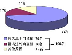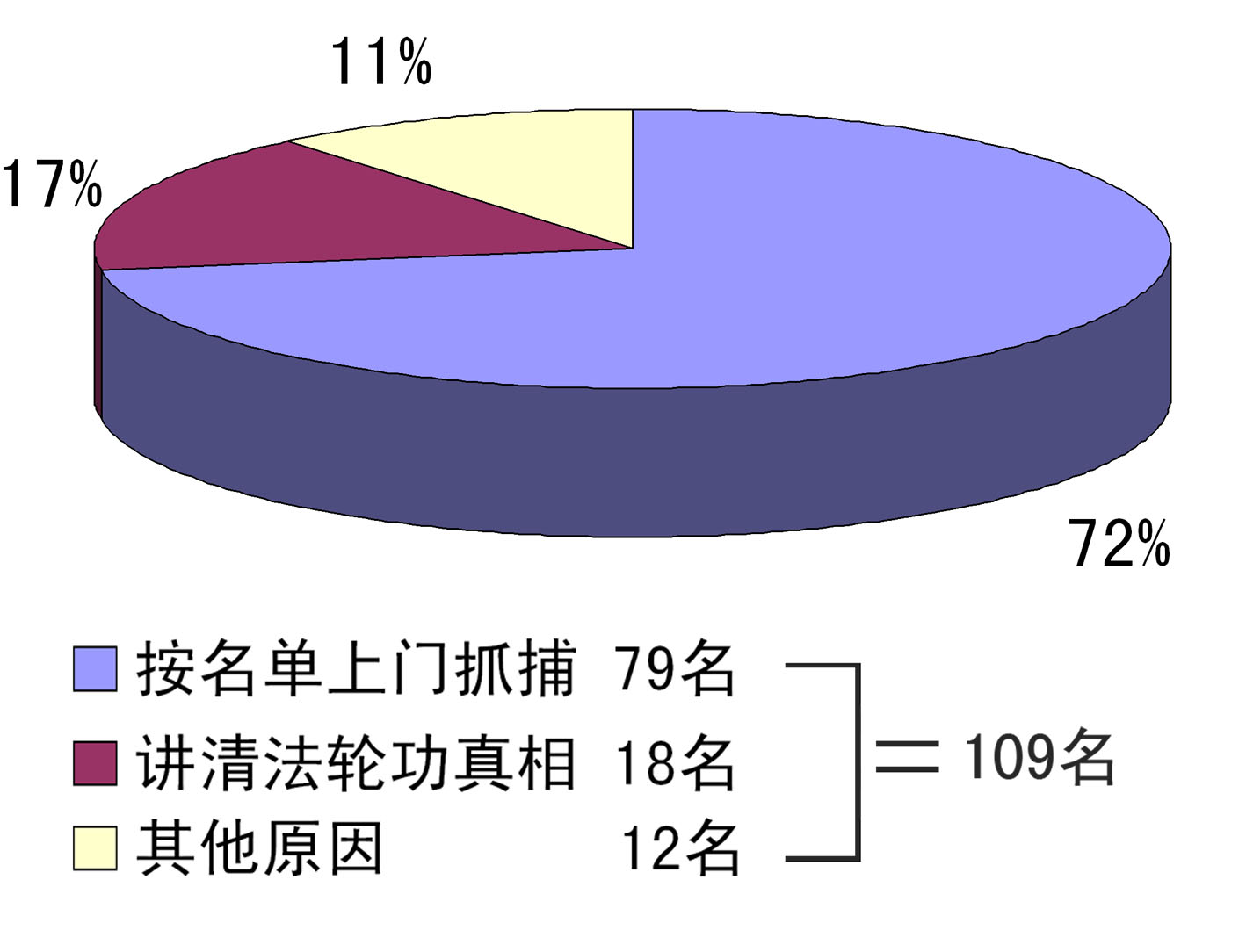 一、被非法抓捕的一百零九名法轮功学员,遍布各县市,百分之七十二是恶警按名单上门统一抓捕的。