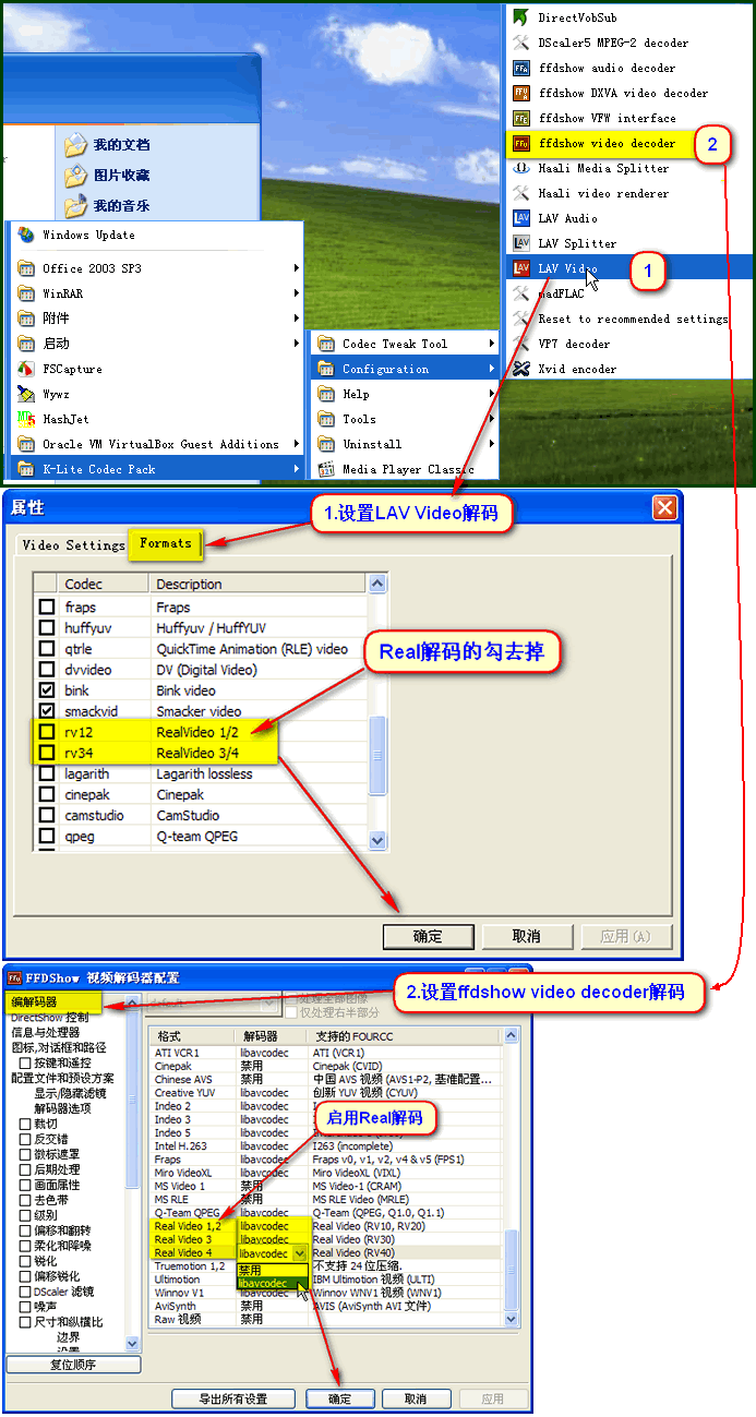 。需要关闭LAV Video解码中的real解码,开启ffdshow video decoder解码中的real解码即可