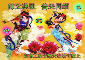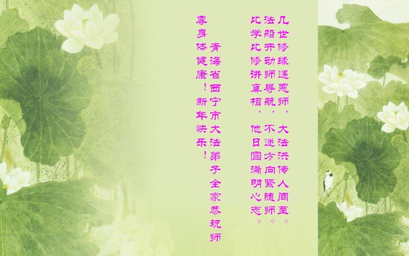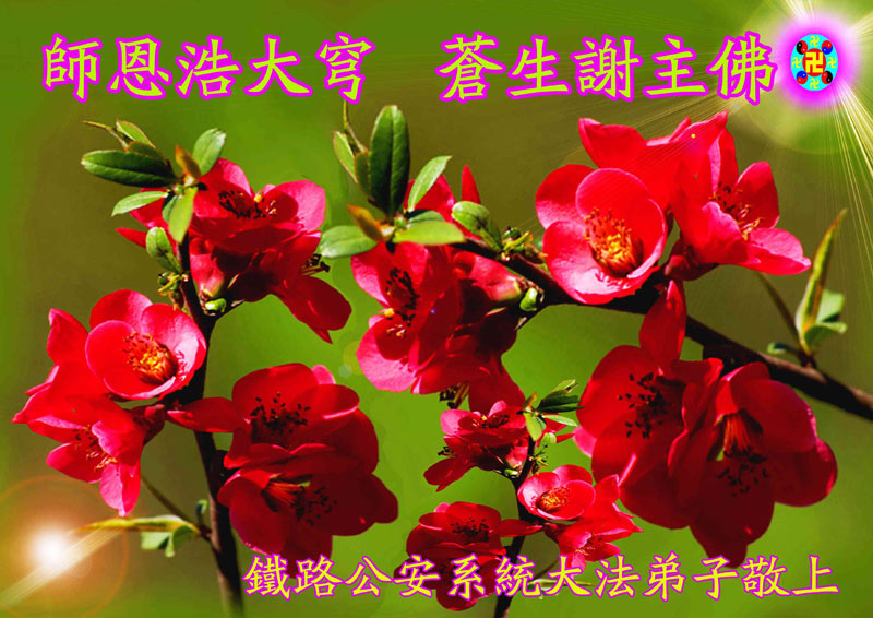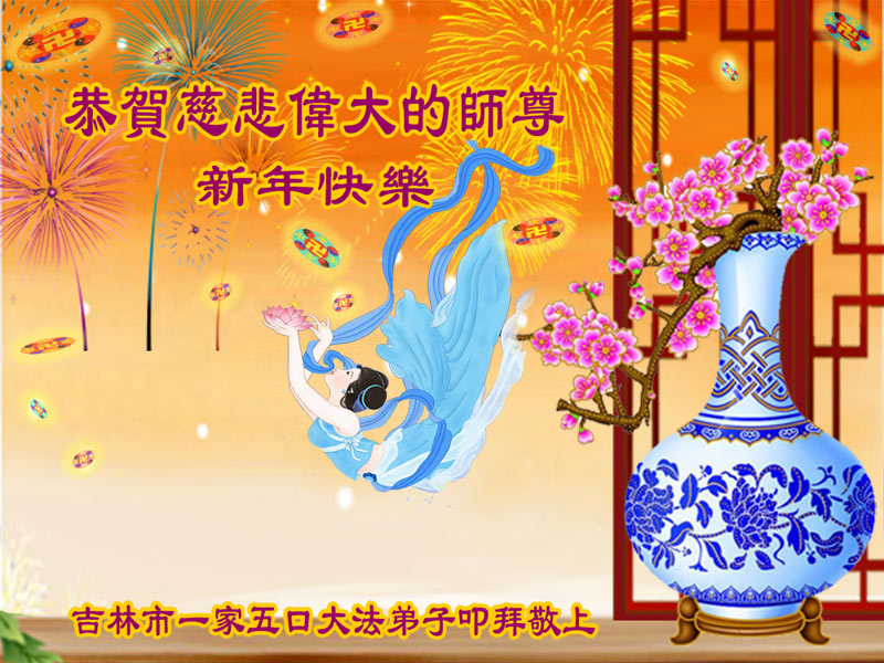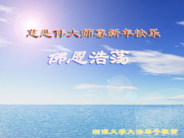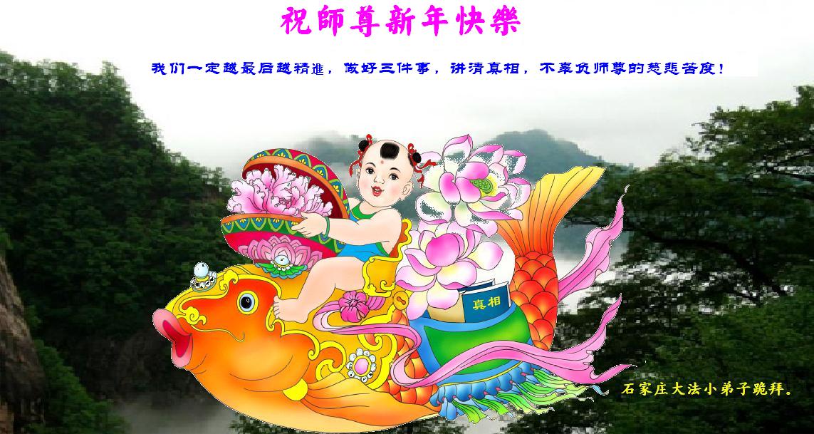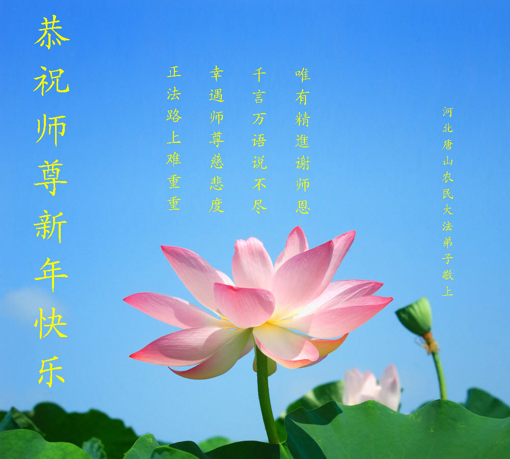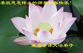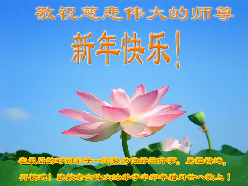 在这新年之际,弟子感谢慈悲伟大的师尊救度之浩荡洪恩!感恩师尊传给了我们宇宙大法,给了我们一条返本归真的通天之路。在新的一年中,我们一定把助师正法的神圣使命牢记在心,珍惜机缘,认认真真学好法,遵照法去做,实实在在修好自己,从本质上改变和提高自己,才能够多救人,用正念正行来回报师尊给予我们的一切,完成誓愿与师父回家!