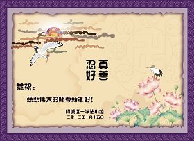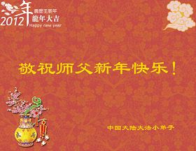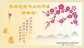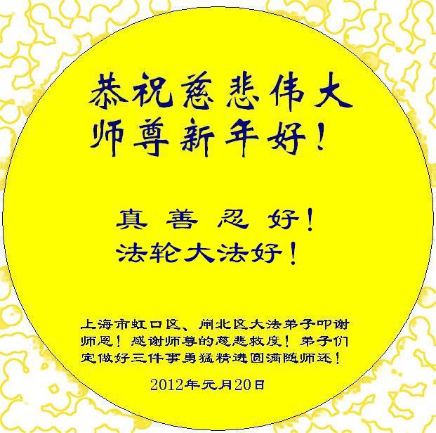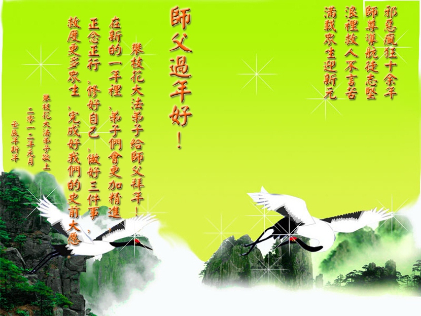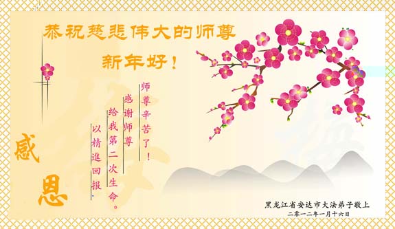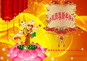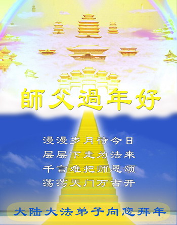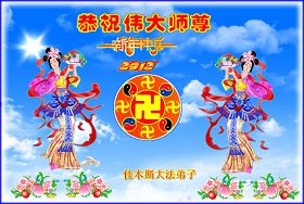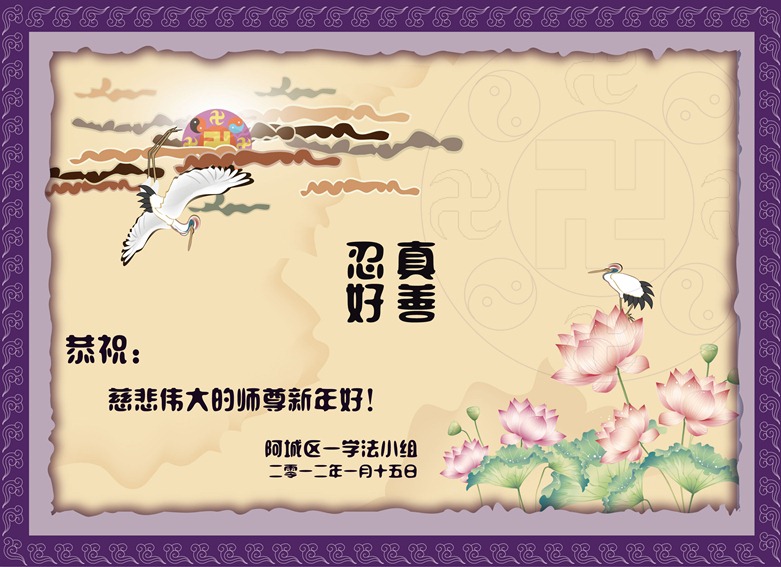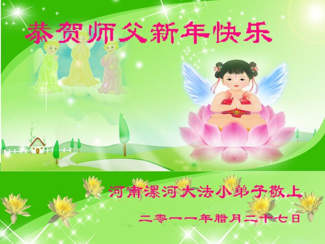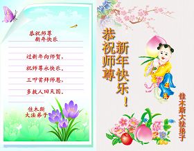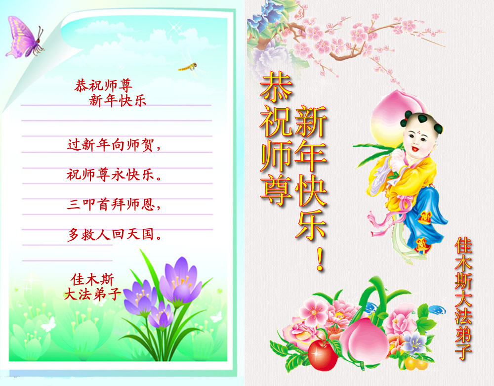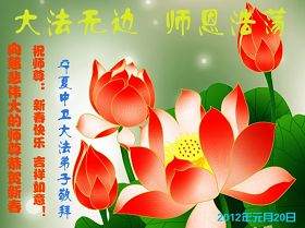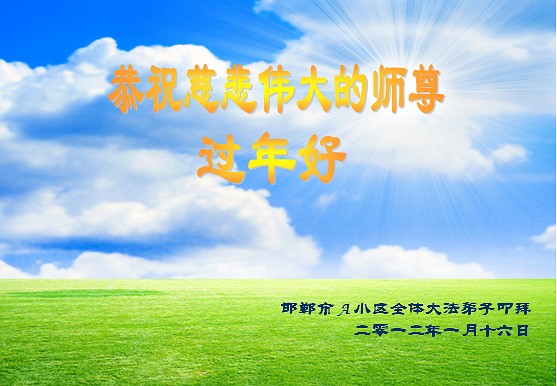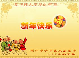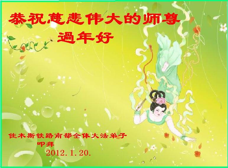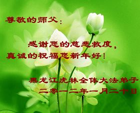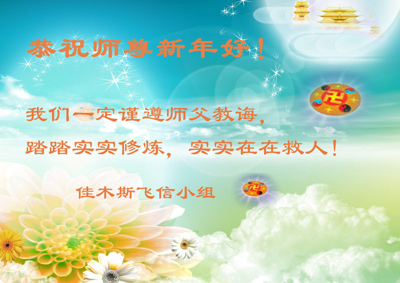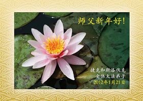 【明慧网二零一二年一月二十三日】壬辰年(二零一二年)新年之际,中国大陆和海外的大法弟子纷纷寄来贺卡贺词,恭祝慈悲伟大的师尊新年快乐,感谢师尊的慈悲救度。以下是欧洲大法弟子的贺词贺卡。