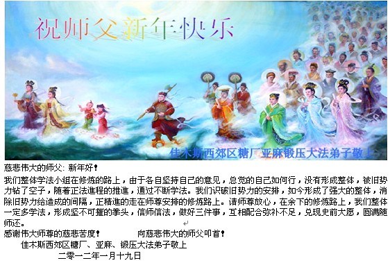 <英文版: http://www.clearwisdom.net/html/articles/2012/1/24/130922.html>美洲大法弟子恭祝师尊新年好