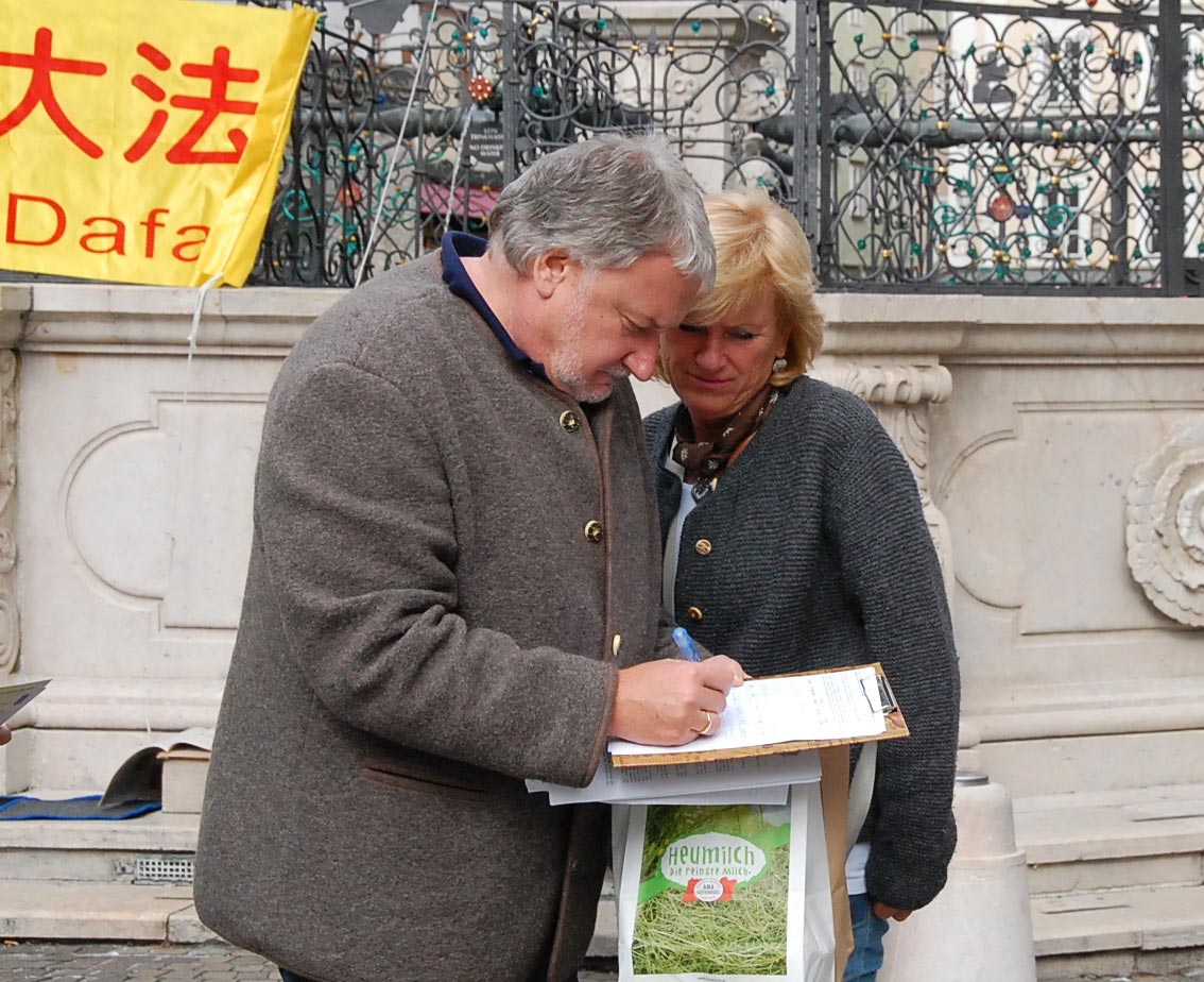 奥地利法轮功学员一直坚持揭露中共的迫害。在十月十三日的活动中,当人们听到中共活摘器官的暴行后,当即表示要在反迫害征签表上签字。来签字的不光是奥地利民众,还有来自德国、法国、瑞士、加拿大、俄罗斯、斯里兰卡、西班牙等国家的民众。人们震惊于中共的残暴,也表示希望自己的签字,能帮助制止这种罪恶行径。