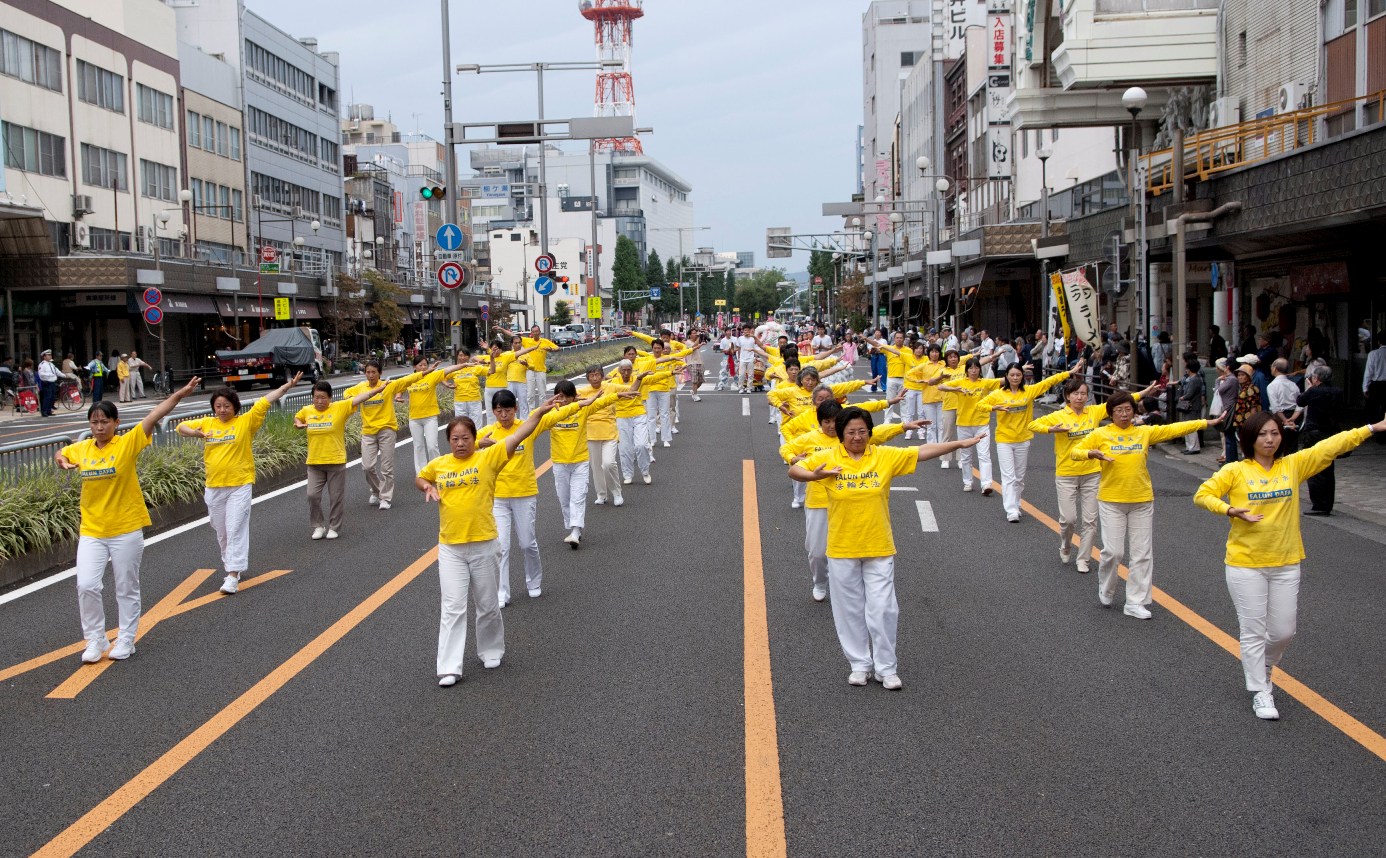 ![]() 法轮功学员在“第五十六届岐阜信长节”的游行活动中进行法轮功的功法演示 |