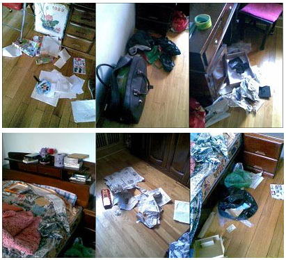 二零一一年五月七日下午四点多钟,董淑兰回到家中,发现家中被盗,屋内被翻的一片狼藉(见下图)。经查证,原来是吉林市昌邑区公安分局伙同莲花派出所恶警在董淑兰不在,又毫不知情的情况下,非法闯入其家中,将家中存款及现金、电脑、三台打印机、塑封机、打孔机、刻录机等私人贵重物品被恶警全部洗劫。