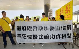 ![]() 香港法轮功学员十月十七日游行到新立法会大楼,向新任立法会议员请愿,要求关注中共团伙四个多月来不断侵扰真相点的恶行。 |