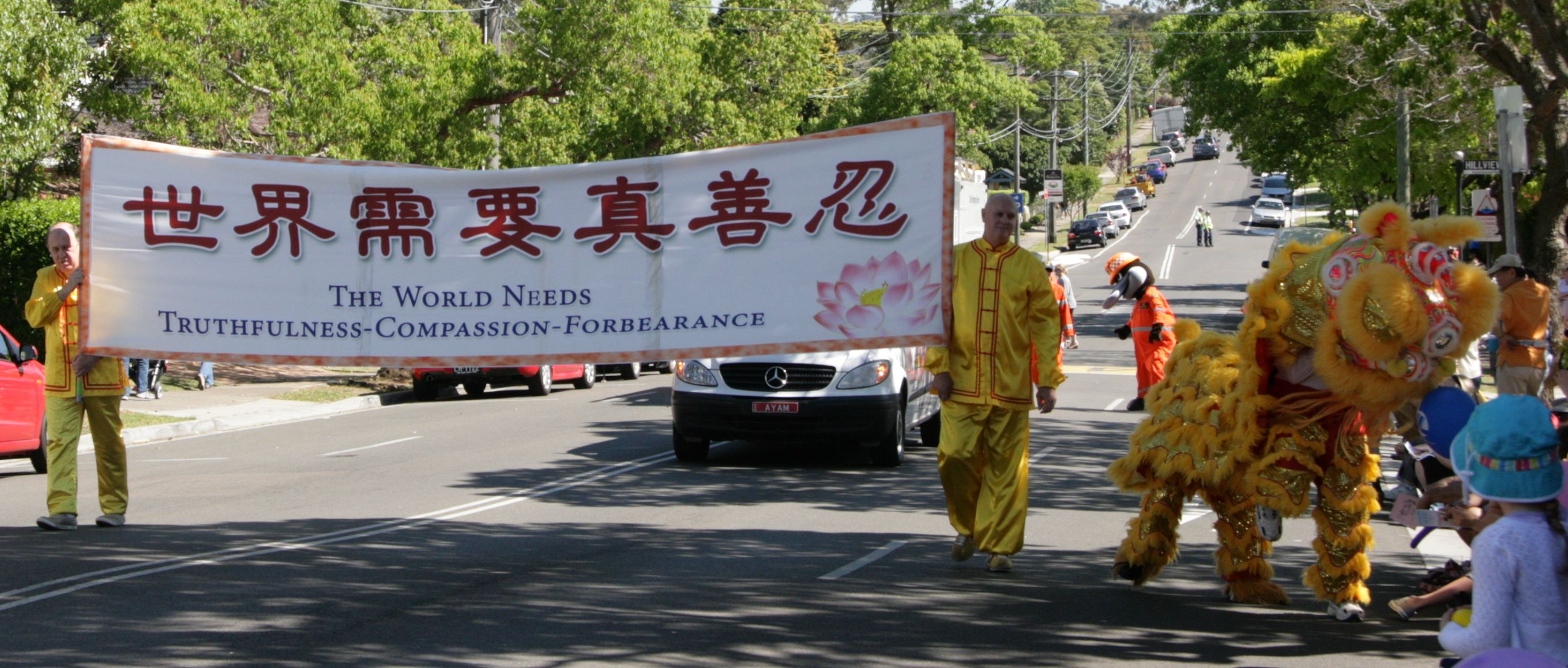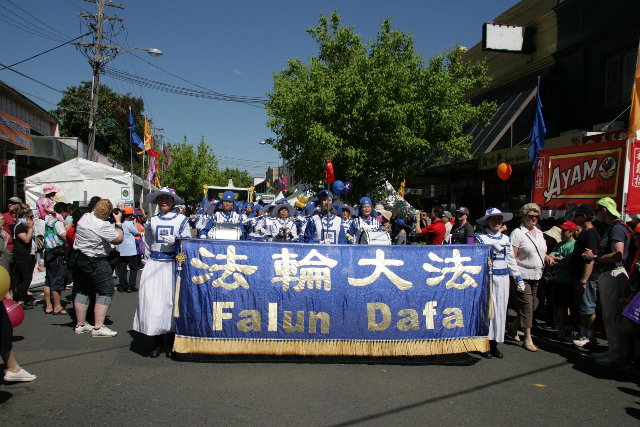 当游行队伍经过主席台时,主持人通过喇叭向全场介绍:“法轮大法是中国古老的传统修炼,他有五套功法,动作缓慢易学,免费教功,现在世界上一百多个国家有超过一亿人在修炼这套功法。修炼法轮功会令人感到轻松愉快……”主席台上市议员和政府工作人员向法轮大法游行队伍鼓掌和挥手致意。