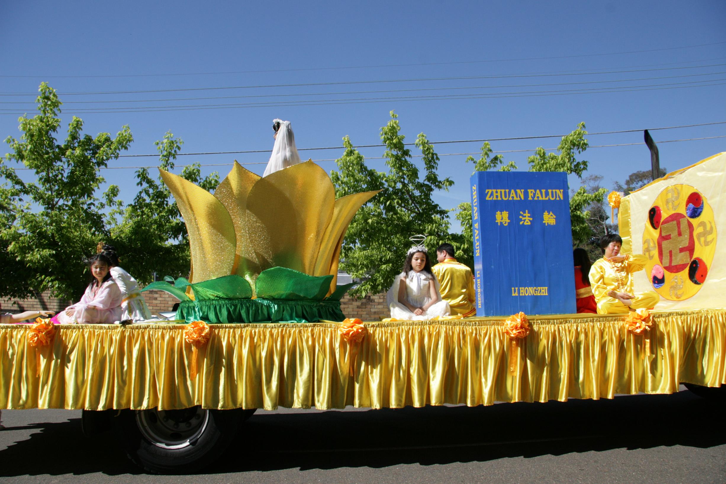 法轮功的天国乐团和精美花车在队伍的行进中展现了人心向上的风貌,壮观的游行队伍把法轮功真相带到广大民众面前,受到震撼的人们表示支持法轮功、谴责中共对法轮功的迫害。整个游行队伍充满活力,展现着平和、坚定的信念以及对和平的热爱。天国乐团的队员身着蓝白色古装,英姿勃勃,健步走来。引来了中西方观众们的热烈鼓掌,拍照摄影。