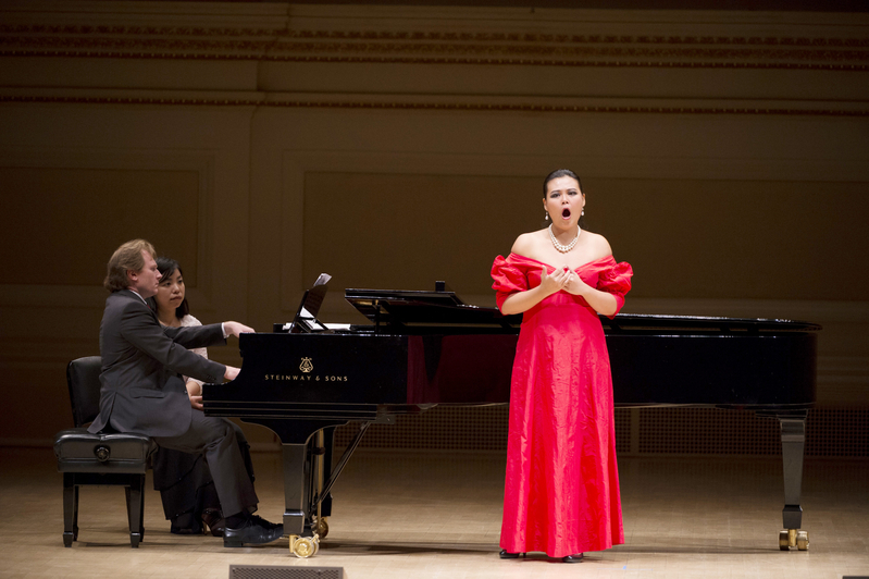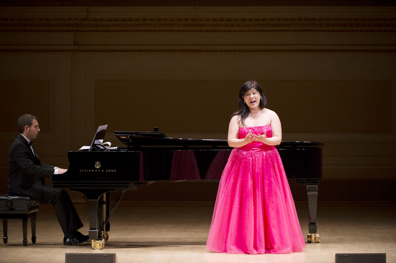 ![]() 女声组银奖得主、来自日本的选手女高音Azusa Dodo于卡内基音乐厅举行的“全世界歌剧唱法声乐大赛” 决赛上 |