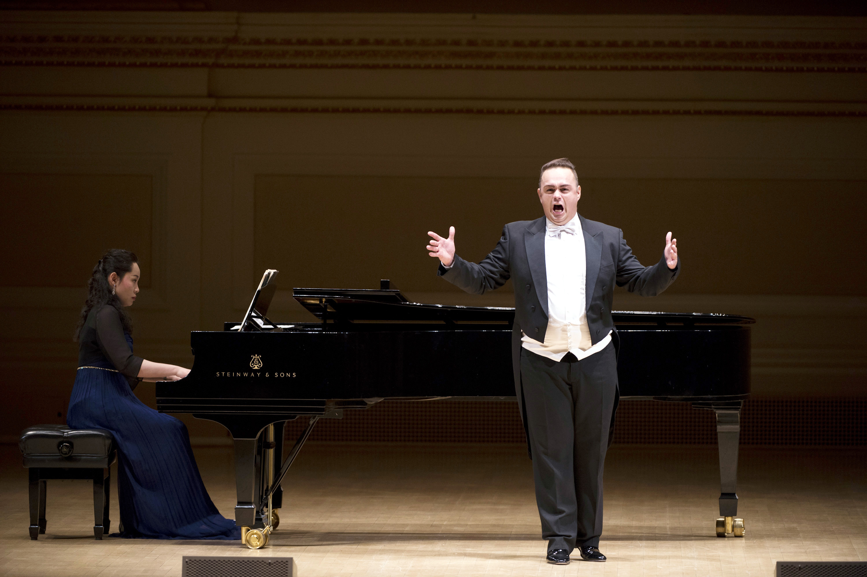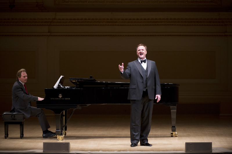 ![]() 男声组铜奖得主、美国选手男高音Tim Augustin于卡内基音乐厅举行的“全世界歌剧唱法声乐大赛” 决赛上 |
