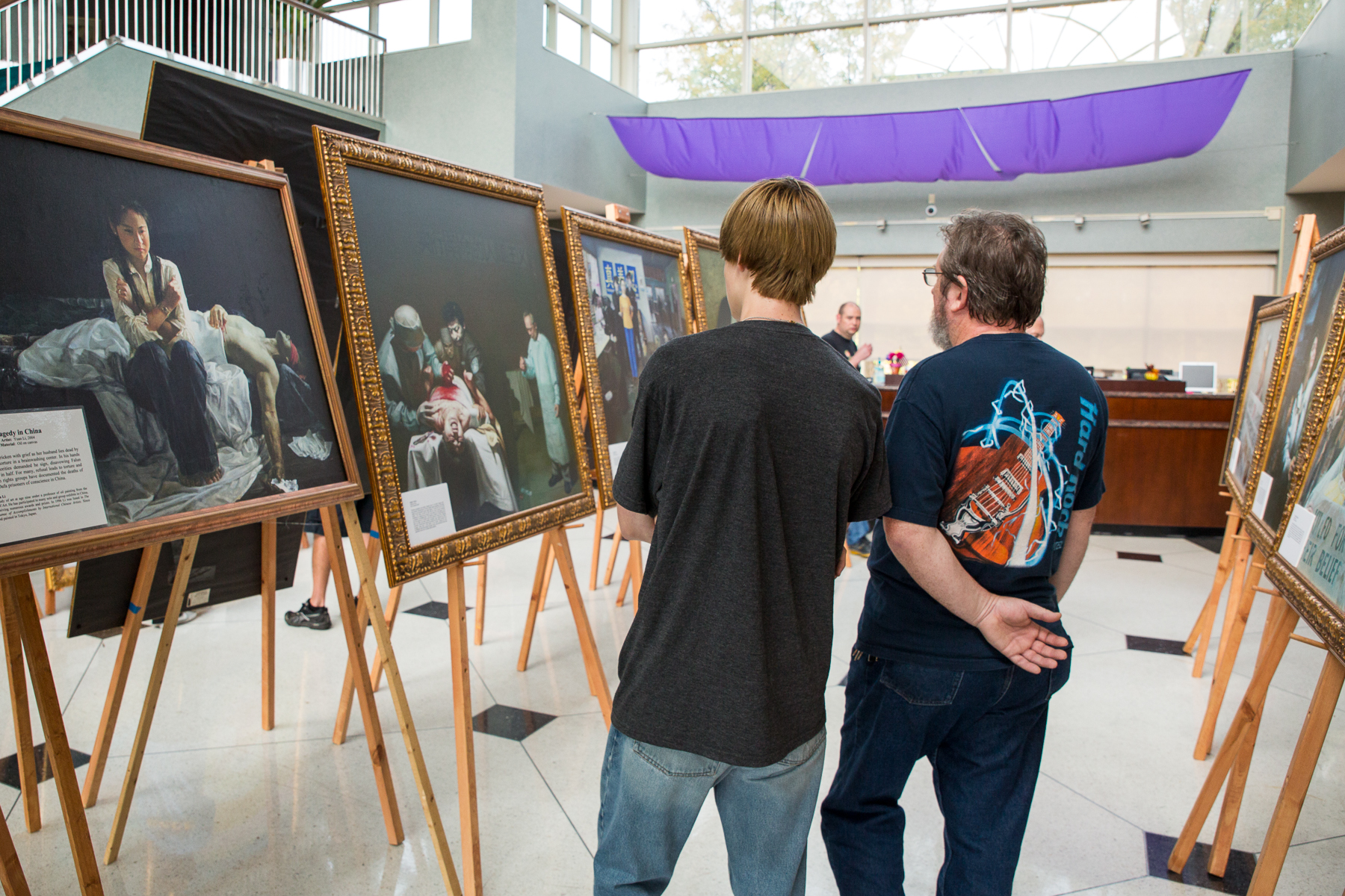 金融投资顾问迈克•黑尔(Mike Hill)先生说:“我以前从不知道法轮功的修炼者因为他们的信仰在中国遭受着如此的迫害。这样的美展毫无疑问是非常有启迪性的。”