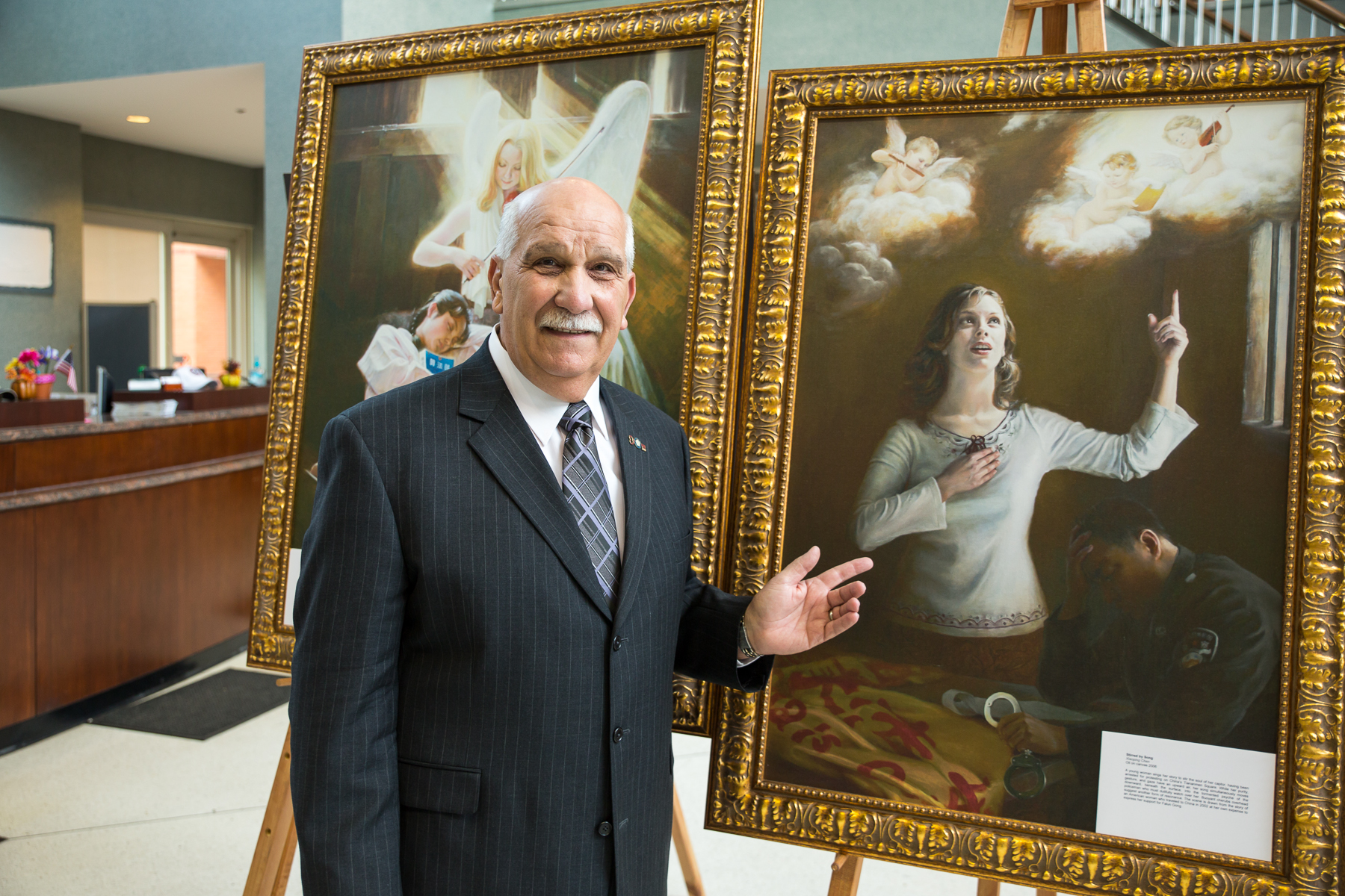 在画展的开幕式上,圣彼得市市长雷纳德‧帕格诺先生特意到场祝贺。在观赏了精美的画作之后,帕格诺市长被深深触动。他认为美展发人深省,应有更多的市民前来观看。