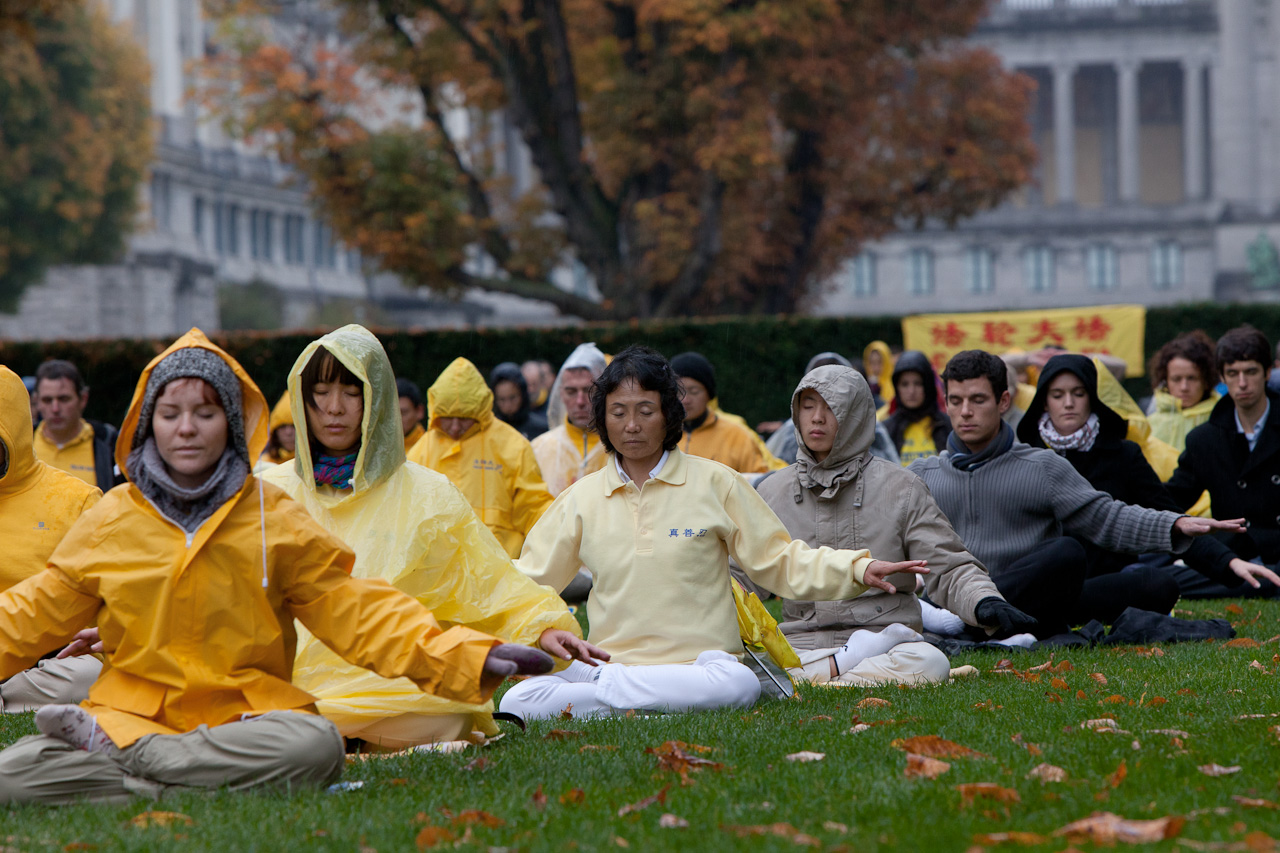 ![]() 法轮大法学员在布鲁塞尔五十年宫公园里炼功 |