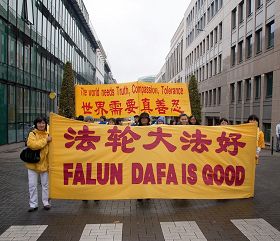欧洲法轮大法学会负责人吴文昕在集会上宣读了声明:“欧洲法轮大法学会呼吁二零一二年诺贝尔和平奖得主,同时也是中国最大的贸易伙伴——欧盟,近期采取新的人权构架以便采取任何必要的措施:首先,在欧盟与中共当局在不同层次上的接触时,公开强烈谴责中共,调查非人道的强行摘取法轮功学员器官的罪行。其次,要求中共当局停止其诽谤的阴谋活动及反人类的罪行,释放所有的被监禁的法轮功学员。”