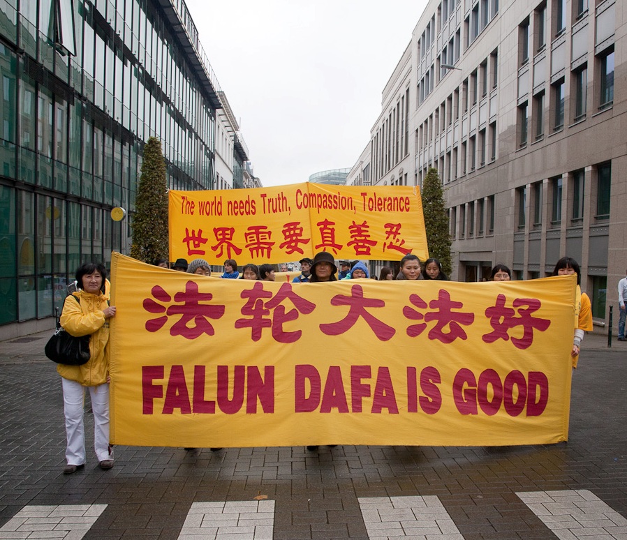 中午,欧盟中心舒曼广场上,来自欧洲十几个国家的法轮功学员举行大型集会,讲述法轮功以“真、善、忍”为原则,教人修心向善,但是却遭到中共的残酷迫害。中共甚至残忍的活体摘取法轮功学员的器官,用以谋利。