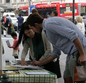 ![]() 悉尼市政府大楼前,民众阅读法轮功真相 |