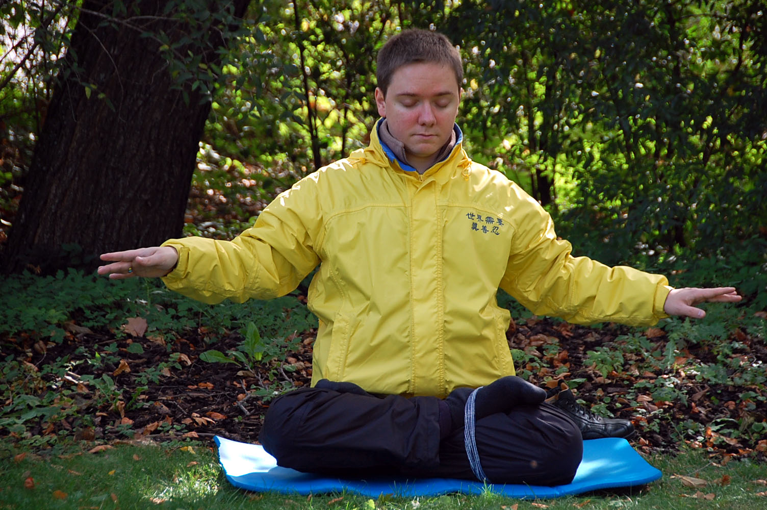 炼功点上的另一位西人学员瑞尼(RENE),于二零零六年,也是他二十三岁那年,在城市公园了解到法轮功的。当时的他正失业在家,有一个很不好的朋友圈子,都是一些社会的边缘青年。他对社会失望,经常流连于派对,酗酒,抽烟,也尝试毒品,做一些不好的事情。因为没有规律的生活,他身体很糟糕,也很瘦弱。
