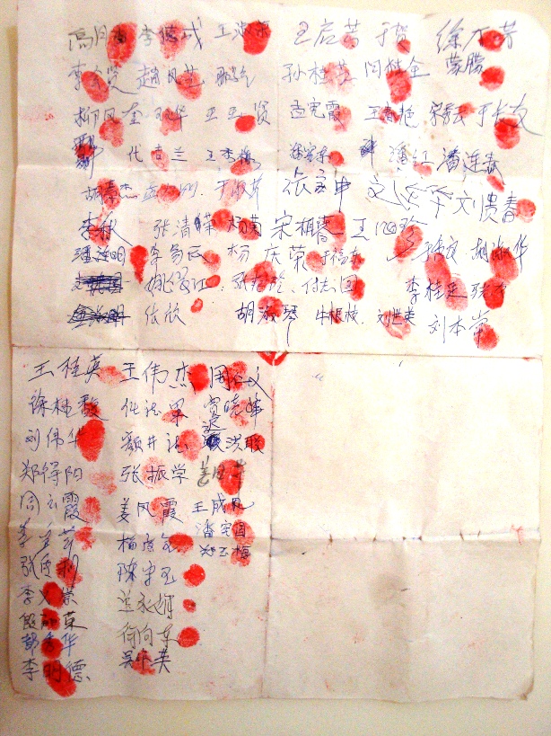 村民要求释放被绑架的法轮功学员李恒良,以下是村民的签名和手印: