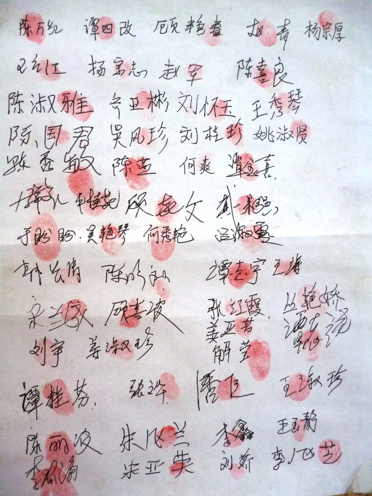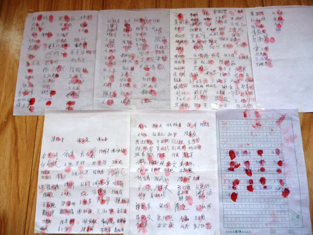 ![]() 目前已有四百多位乡亲邻里自愿签名呼吁相关单位释放谭玉蕊。 |