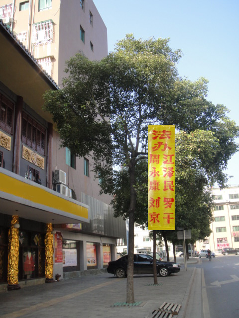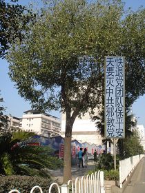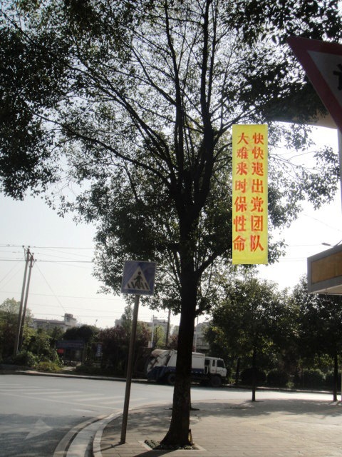 目前湖南某地在旅游区、大街小巷、住宅小区、乡镇要道悬挂、喷、贴大量的真相条幅。