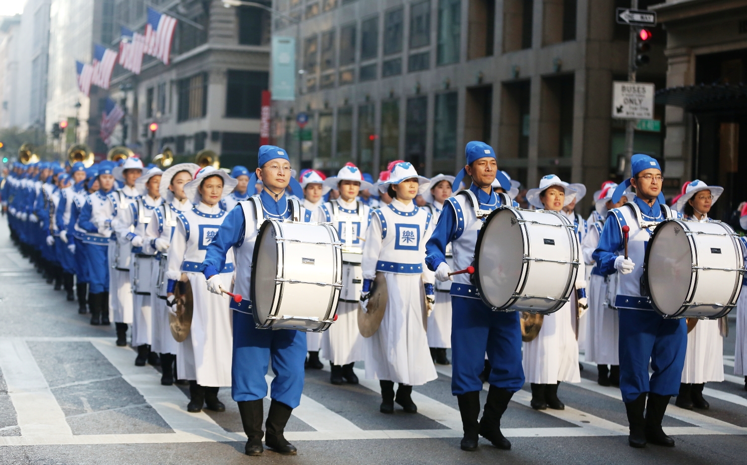 法轮功队伍负责人易蓉表示,法轮功每年都受邀参加老兵节盛大游行,体现了法轮功在国际上受到的欢迎,这和中共对法轮功的打压形成鲜明的对比。法轮功队伍壮观整齐,服饰优美,音乐昂然光明,希望更多人能通过看到这个游行了解法轮功真相,了解到“法轮大法好”和“真、善、忍”的信息,同时希望给纽约市民和世人带去美好的未来。