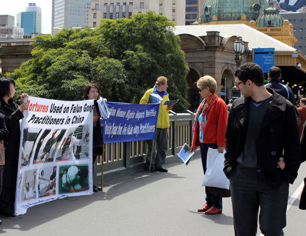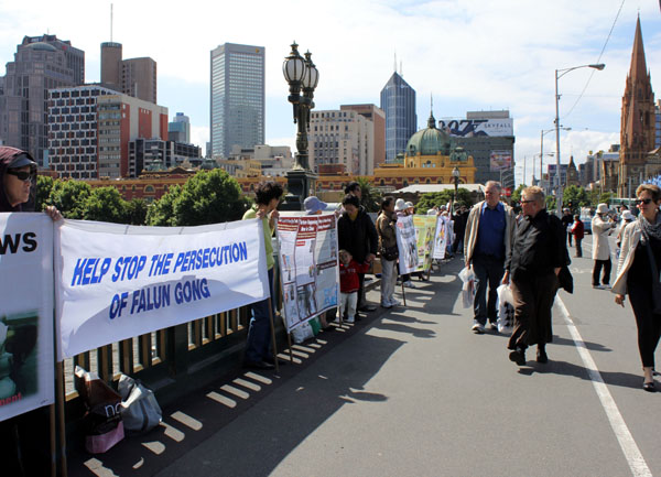 ![]() 墨尔本法轮功学员以横幅和展板向人们揭露中共暴行 |