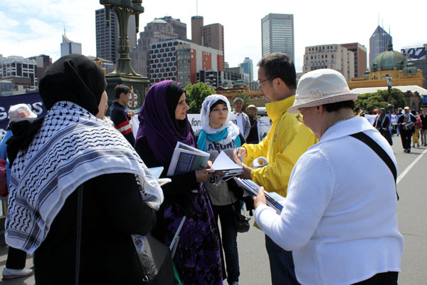 ![]() 墨尔本市中心,人们驻足详细了解法轮功真相 |