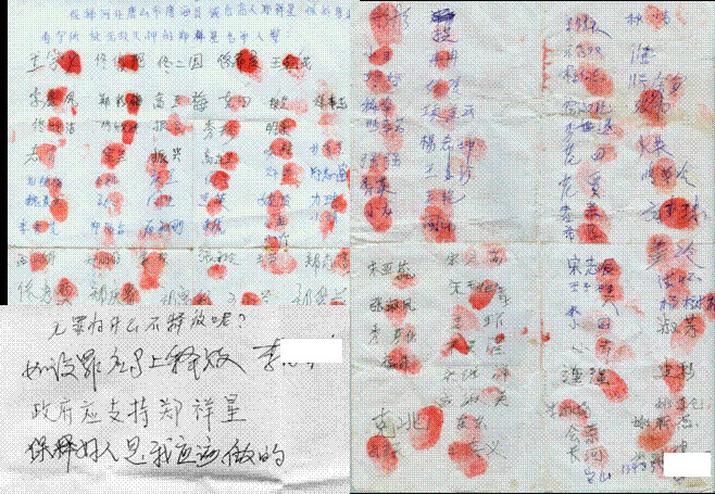 中共所谓的“执法部门”罔顾法律,强行判郑祥星十年徒刑,进一步引起当地民众愤慨,有的骂“这共产党简直不是东西”,一位七十多岁的老婆婆说:“这么好的人还要给判刑十年,这是什么世道了,这社会完了……”现在,更多当地民众再次联名、摁手印,要求释放郑祥星。继明慧网报道的三千人签名后,又有四个县七百五十五人签名要求释放郑祥星。有的老百姓不但签了名,摁了红手印,还把自己的手机号写在了签名后面,有的老百姓签上名后直接写上要求释放郑祥星。