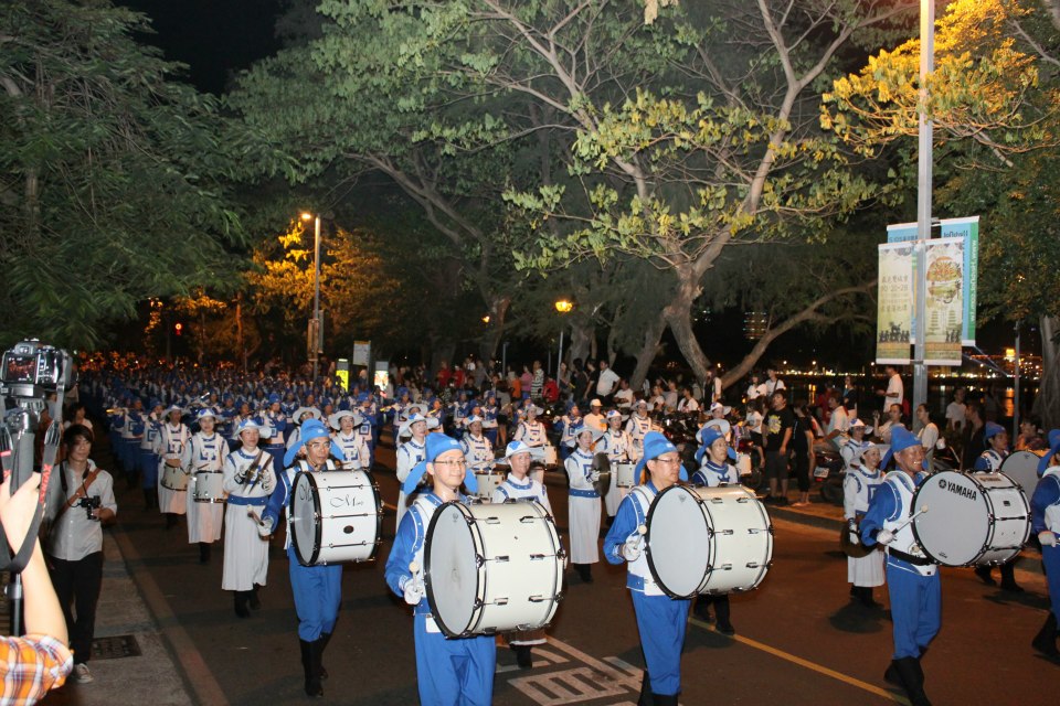在“高雄左营万年季”晚间踩街的活动开始前,身穿古装的天国乐团一出现,围观的游客便迫不及待频频询问:“何时要演奏?”除了天国乐团一百多位团员壮观的队伍外,还有唐装仙女队也同时亮相,让现场的群众笑容满面,拿着手机不断录像。天国乐团雄壮威武的乐音,让民众惊喜连连,有的高兴地说道:“快看这个,天国来的乐团啊!”也有的惊叹:“哇,仙女呀!”
