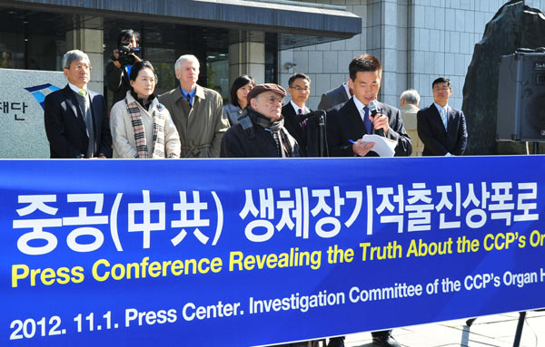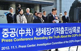 十一月一日上午,“中共活摘器官真相调查委员会”在韩国首尔媒体中心(press center)大楼前举行新闻发布会。主办方称,这次新闻发布会原计划在媒体中心十九层的新闻中心举行,但迫于中共驻韩使馆的压力,媒体中心单方面取消了预约。