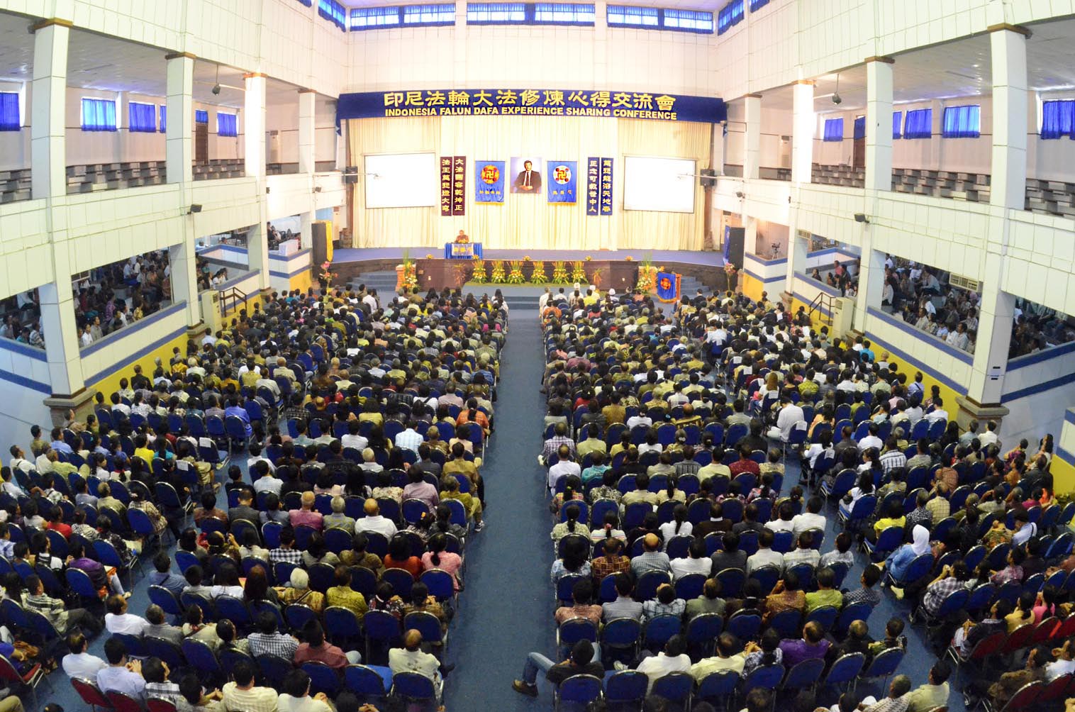![]() 法轮功学员在二零一二年印尼法会上交流心得 |