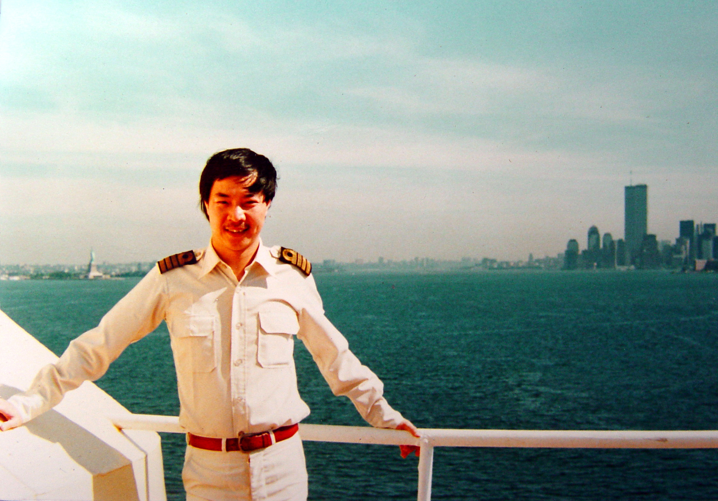 ![]() 1988年在英吉利海峡,王中同船长管理的三万吨商船 |