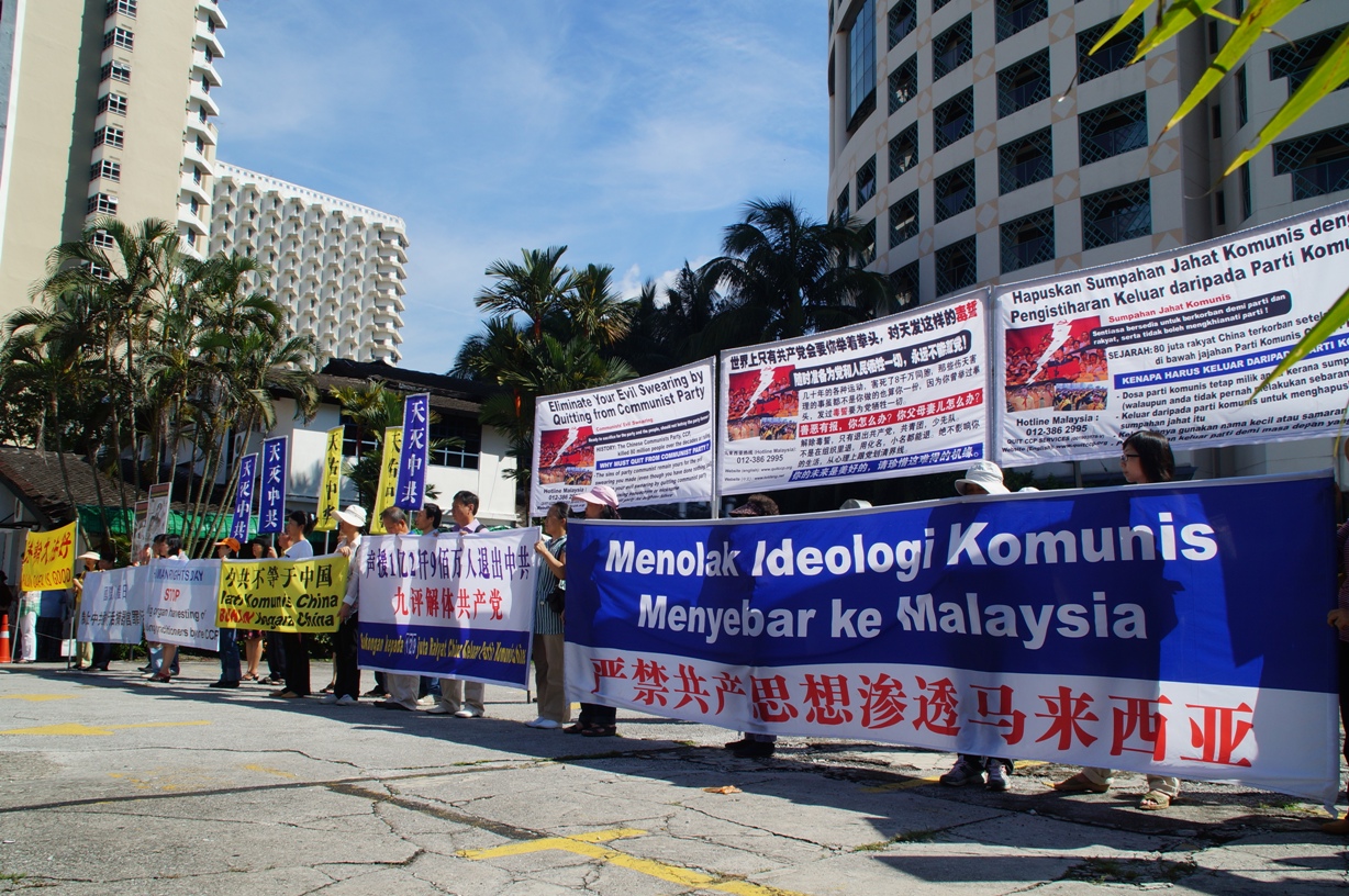郭先生最后指出:“国与国之间的邦交和经济合作,可以为国家和人民谋福利,在国际上取得更繁荣的发展,人民会赞赏。但是要切记,中共不等于中国,众所周知,共产党不信神,它是一种反宇宙的邪恶生灵。世界上的许多国家因遭到共产党的祸害,早已纷纷抛弃它,其中就包括了马来西亚。而在中国大陆,自二零零四年十一月《·九·评*共产党》系列社论的面世,今天已有超出一亿两千九百万中国人觉醒,退出共产党、共青团和少先队,这个数字并以每天数万人的速度不断上升。