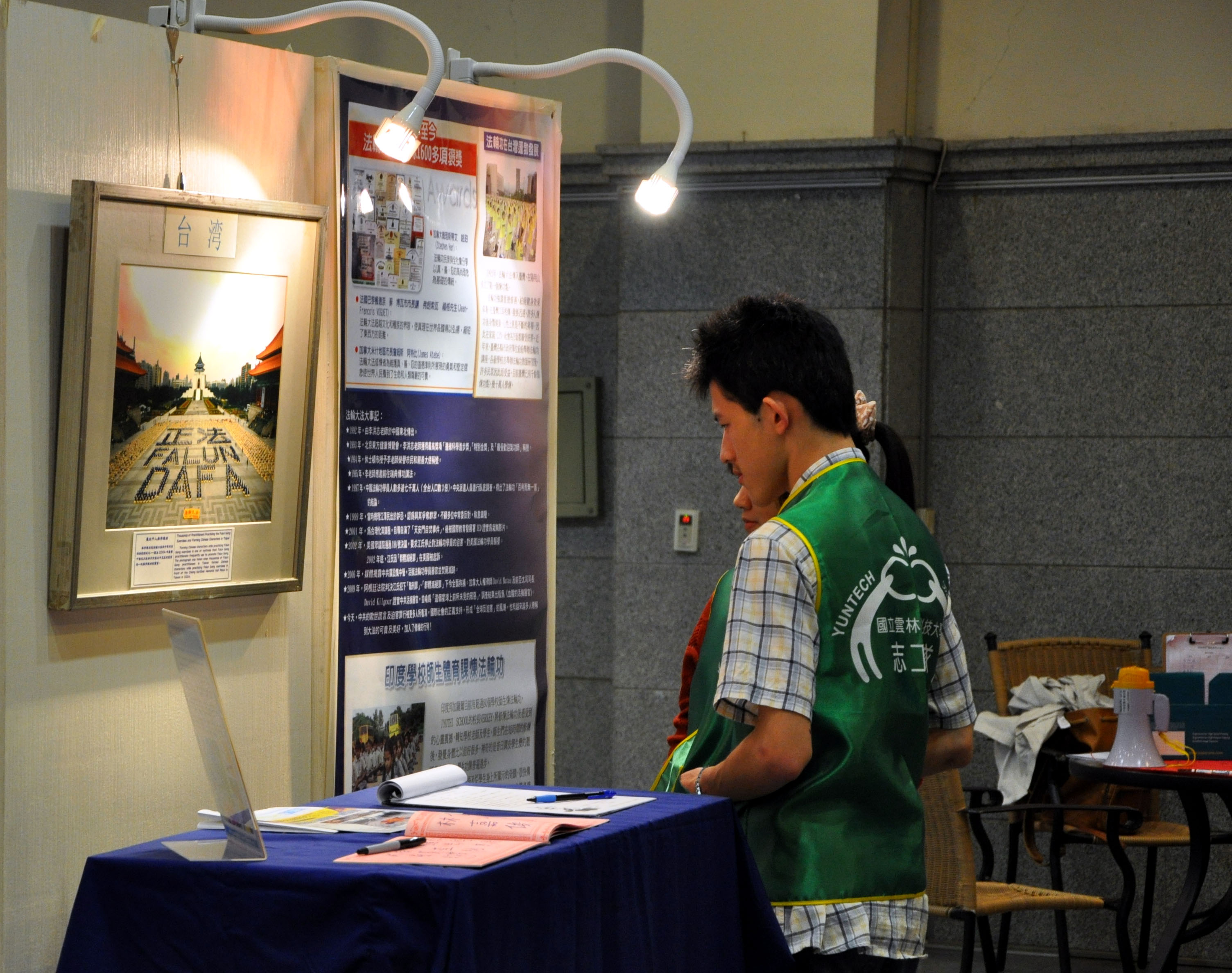 有位台湾学生以前逛大陆网站,听信了中共的谎言,误以为大法是不好的。观看摄影展时,听法轮功学员解说图片,揭穿了中共的谎言,他整整和法轮功学员们讨论了一小时之久,并且谴责活摘器官的邪恶。