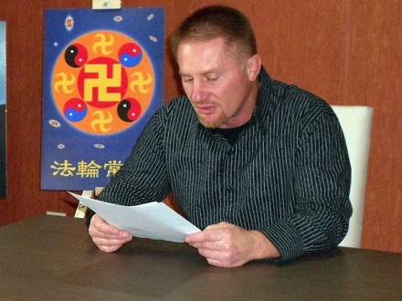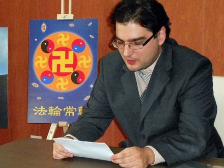 ![]() 来自Stara Zagora的Ivan在法会上交流修炼心得体会 |