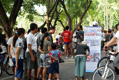 ![]() 在巴厘岛,公园里的人们驻足观看揭露中共活摘器官的展板 |
