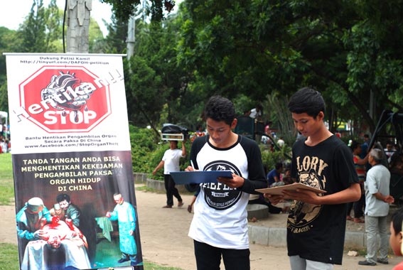 十二月九日,巴厘岛法轮功学员在当地的两大公园同时举行了制止中共活摘器官暴行的呼吁活动。一位中年男士说:“在印尼,手术后要找到相同的血型甚至都很难,(中国)怎么可能那么容易就发现合适的器官呢?!”了解了中共活摘法轮功学员器官牟取暴利的真相后,大多数人都签下了他们的名字,以支持法轮功学员们的义举。