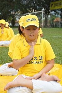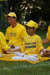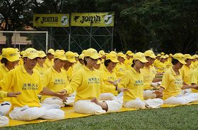 十二月十五日下午,在二零一二年马来西亚法轮大法修炼心得交流会召开前夕,法轮大法学员来到霹雳州首府怡保,在靠近怡保市政厅的苏丹阿都加里尔大草场 (Padang Sultan Abdul Jalil)参加了集体炼功与排字活动。