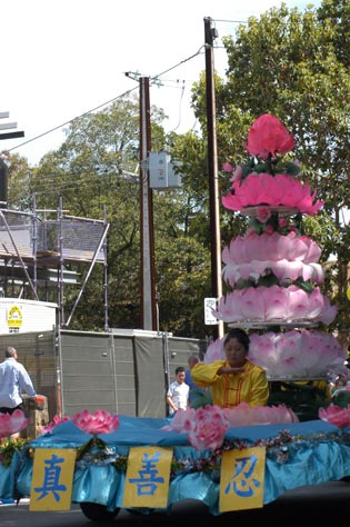 ![]() 南澳法轮功学员精心制作的莲花塔花车。 |