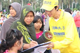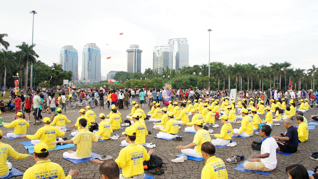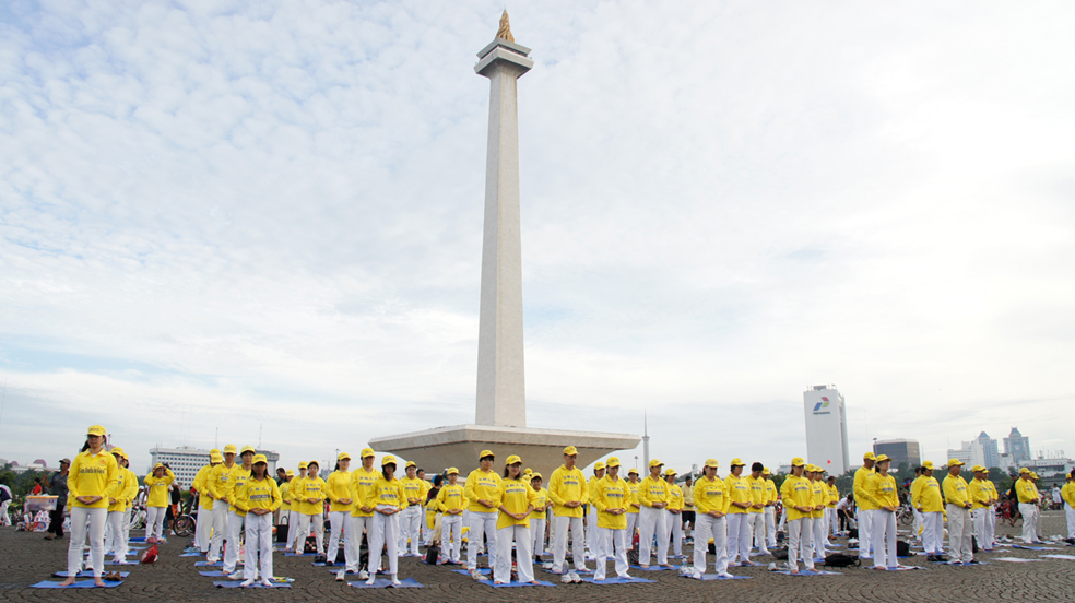 ![]() 法轮功学员在雅加达中央公园集体炼功 |