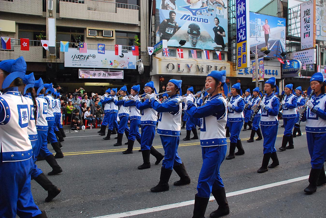 台湾法轮大法天国乐团由二百五十位团员组成,军容壮盛,管乐节主办单位特别安排其为压轴队伍。天国乐团从嘉义市中山路的起点走到体育场,全程近三公里。嘉义市民再次看见这支雄壮的军乐队,都雀跃不已。