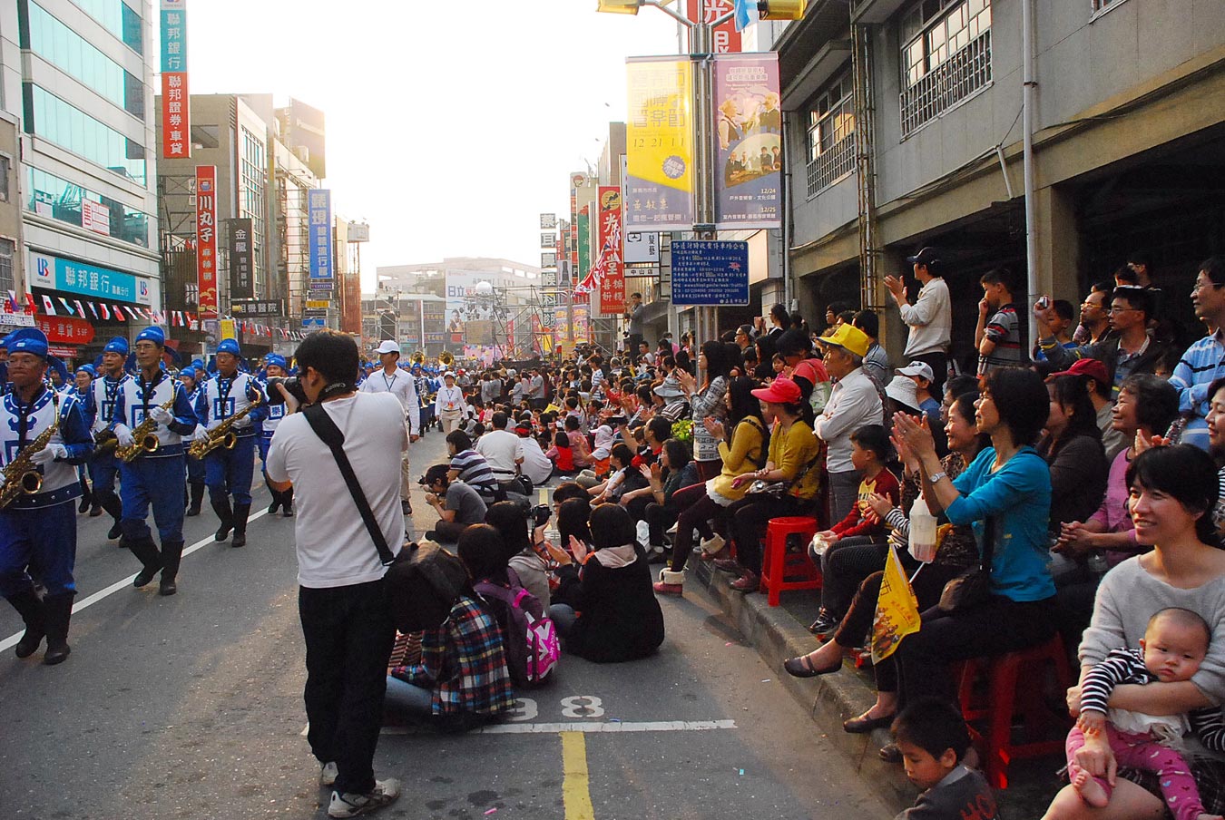 ![]() 天国乐团行进在嘉义市最热闹的中山路圆环,民众夹道欢呼 |